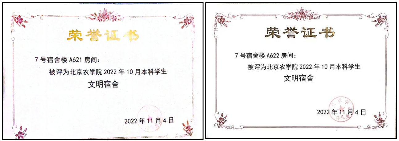 班级同学遵守校规校纪,具有良好的道德品质。在宿舍建设方面,成绩显著,班内无脏、乱、差宿舍,宿舍成绩优秀率达到了百分之百,累计获得7次文明宿舍。其中,7A622宿舍曾4次被评为M88官方网站本科员工文明宿舍。