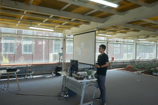 公司高级实验师、本科生第二党支部书记李小顺老师通过宣传片和实地讲解,向同学们介绍了M88官方网站智慧农业实验温室的建设目的和意义,重点讲解了智能温室控制系统、植物本体传感器、智能灌溉系统、水质监测系统和智能狗舍等设备设施。