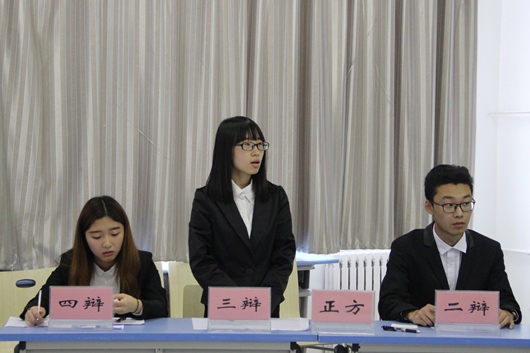 比赛伊始,我方一辩进行开篇立论,整个过程思路清晰,语言流畅,为我方在接下来的攻辩环节打下了基础。反方一辩也简明扼要的陈述了己方观点。立论过程中公司一辩的语言显得更为精炼,提出自己的观点时更为清晰。