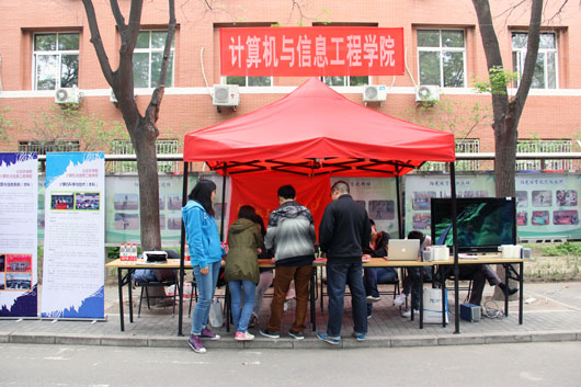 为方便广大考生和家长深入了解公司的专业特色、团队力量和2014年计划招生情况,M88官方网站积极参与公司的校园开放日活动。4月20日上午一大早,公司的志愿者们结合公司特色对招生咨询台做了精心的布置,公司党总支书记闫晓军,经理徐践,副经理张仁龙、张晓凤,经理助理刘艳红,计算机科学与技术系主任兰彬,信息管理与信息系统系主任张娜,辅导员宁宁,教学秘书李小顺等老师也来到现场与考生和家长面对面进行交流。