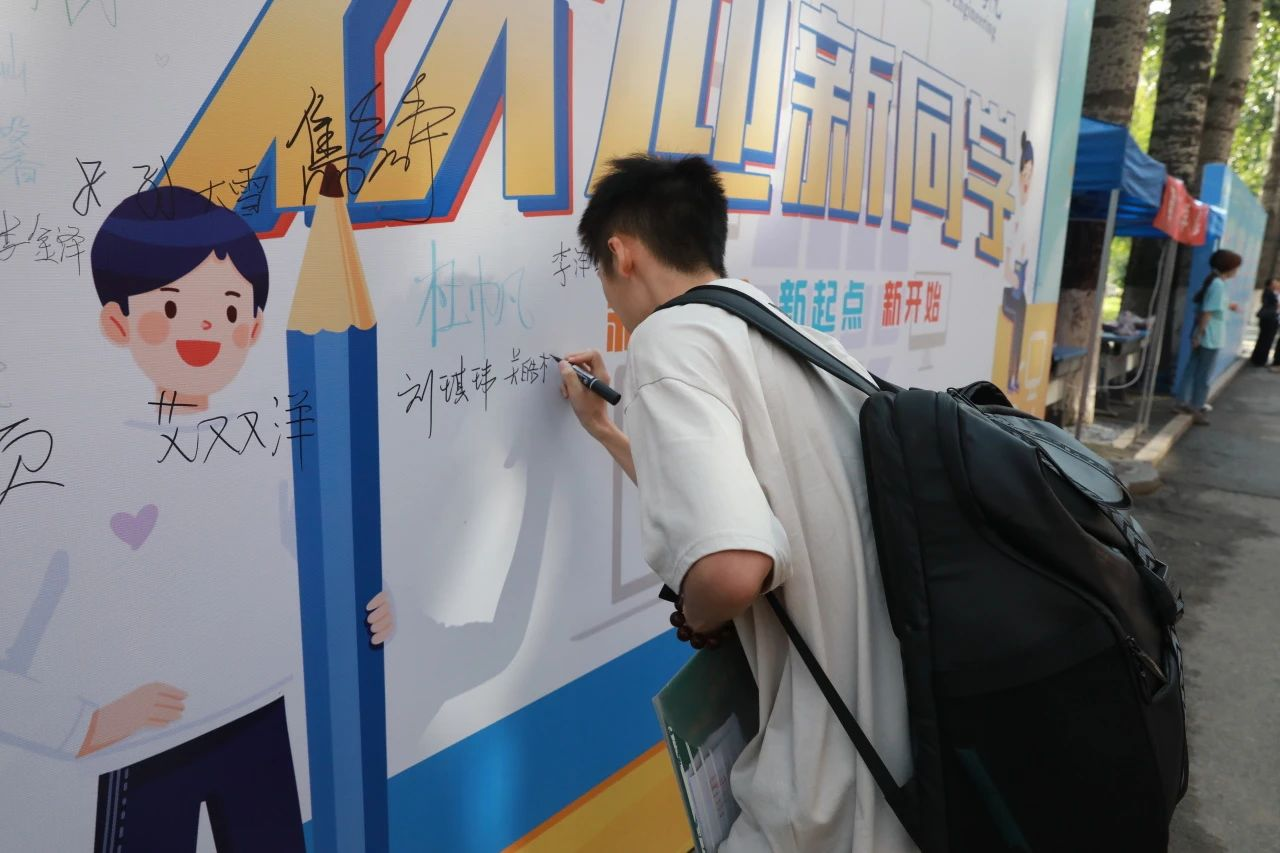 在完成了人脸识别注册后,每位新生都在签名墙上签字留念,寄语老员工活,正式开启新的人生篇章。公司为每名毕业生精心准备了开学物品,从校徽、院徽到环保手提袋,从公司地图到新生手册等,饱含公司老师和学长学姐的关心。志愿者们热情的为新生引路、接送行李,一颗颗汗水和一句句感谢是他们为新生周到服务的证明。