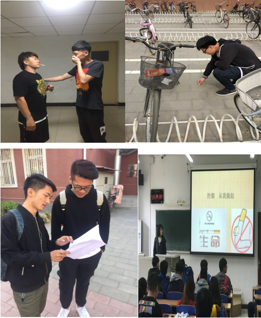 本次团日活动形式丰富,部分支部开展了控烟教育活动,为同学们详细讲解了吸烟的危害,同时用图片展示了几张常年吸烟人的肺和不吸烟人的肺的区别,让同学们了解吸烟对肺的伤害。同学们就此展开热烈讨论,并对吸烟同学进行重点思想教育,大家在团日活动后还签署了控烟承诺书;有的支部采用的是深入校园发放控烟宣传单的形式,以带动更多的同学参与控烟行动中,主动捡拾校园中的烟头、烟蒂等,做到身体力行,面对同学的劝烟绝不接受并对其进行思想教育,用实际行动表明控烟的决心,化身员工记者,采访同学们对于控烟活动的感想等,针对采访结果进行总结以起到教育警示同学的效果。