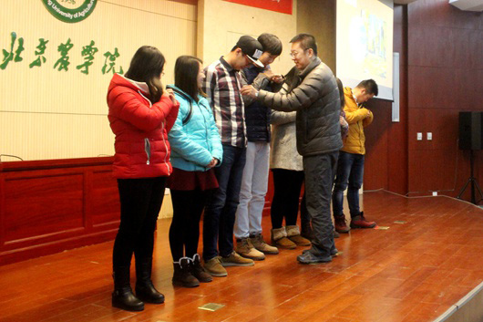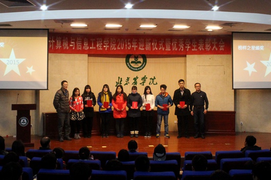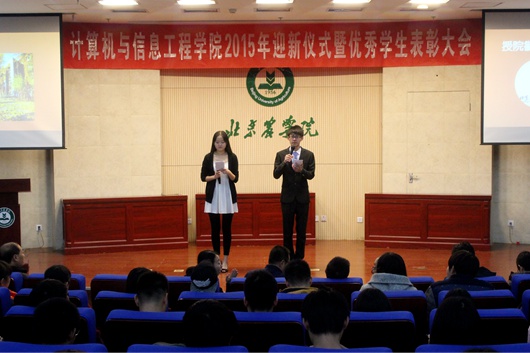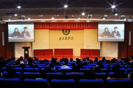接下来,在最具公司特色的迎新仪式活动——庄严的院徽授予环节中,2015级研究生、本科生依次上台,由公司领导、研究生导师以及班主任老师为他们授予并佩戴院徽。每一位拿到院徽的同学都掩不住内心的喜悦与自豪,这一枚枚小小的徽章,象征着每一名计算机人的归属。