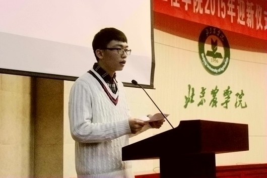 刘志杨同学代表全体2015级新生发言,与大家分享了入学后的感悟。他说,大学的学习和生活与中学有很大的不同,有很多同学感到很不适应,但是公司领导老师的关怀和学长学姐的热情帮助让同学们感受到了温暖,相信2015级全体同学面对各种挑战,一定会迎难而上,努力学习、认真工作、积极参加各项活动,收获属于自己的精彩。青晨同学代表老生发言,与同学们分享和交流她的学习、生活经验。青晨同学连续两年获得国家奖学金、特等奖学金、三好员工等荣誉称号,并在校运动会、数学建模比赛、英语竞赛等活动中荣获多个奖项。她把自己的学习经验和参赛经验毫无保留的与同学们进行分享,她说,只要你比别人更努力一些、更认真一些,一定能够收获的更多。