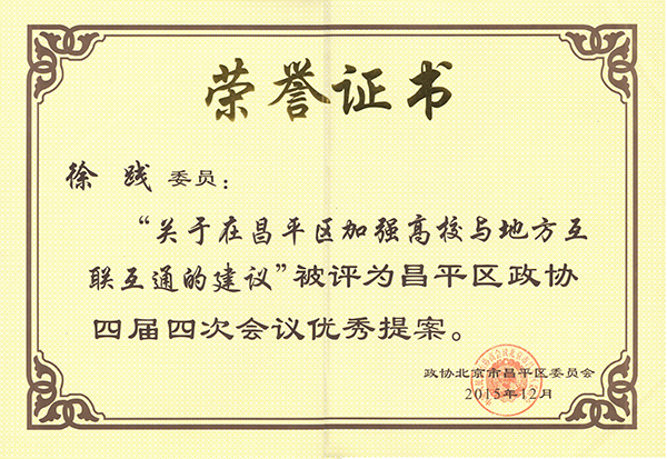 经理徐践荣获昌平区优秀政协委员等荣誉称号