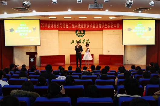 12月4日,计算机公司迎新仪式暨优秀员工表彰大会在图书馆报告厅隆重举行。公司党政领导班子、系主任、班主任、辅导员、教师代表以及全体2014级员工参加大会。
