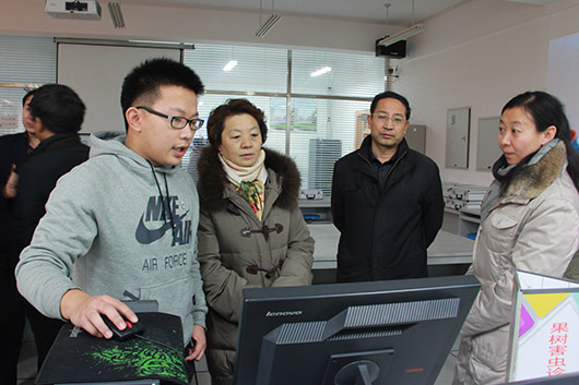 颁奖仪式结束后,与会领导和嘉宾共同参观了计算机技术与智能农业成果展。大家首先来到我公司的智能温室进行参观,员工讲解员为大家介绍和展示了智能温室的主要设施、控制系统、潮汐灌溉技术等。在计算机中心二楼的展示间,员工讲解员还为与会领导和嘉宾展示了我公司老师的科技成果,包括“百村农业信息化平台”、“美丽乡村农场直供网站”、“果树害虫预警系统”、“果树害虫智能诊断系统”、“门头沟特色果业精准化管理集成与示范平台”、“数字化校园”、“智能温室监控系统”以及公司老师近年来的著作与发表论文成果等。在讲解过程中,同学们不仅认真解答了大家提出的问题,声情并茂的讲解也给参观者留下了深刻的印象。