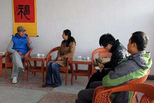 北京市阳光关怀果树盆景专业合作社总经理陈小年热情接待大家。陈总首先向大家介绍了果树盆景合作社的建设情况和未来的规划设计,他说,合作社计划将果树盆景项目普及到全村,让村民实现“居家就业”。他希望未来可以建立一个计算机网络与手机短信相结合的信息平台,便于村民遇到各种种植问题时能够及时反馈和咨询,并希望与计算机公司进行深入合作,开发信息平台。