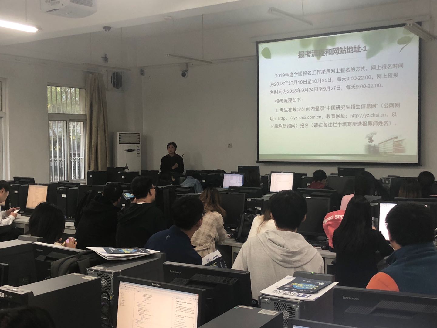 10月18日下午在和10月20日下午,在计算机实验中心和4015会议室,分别为本校大三员工和太原科技大学的同学们集中开展招生宣讲工作。宣讲内容包括学位点概况、2019年招生政策、奖助政策等。